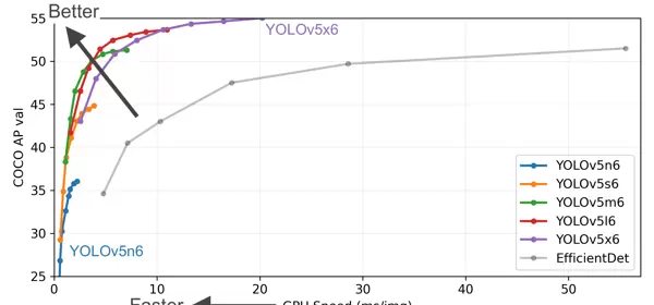 YOLOv5共有四种不同性能的版本,具体表现如下图所示: