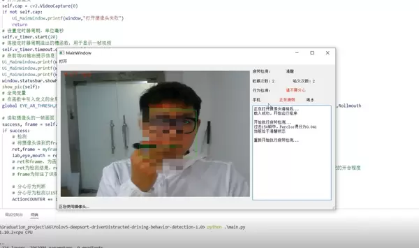YOLOV5 是一种先进的目标检测算法,适用于实时场景下的物体检测任务。在本项目中,YOLOV5 被用来检测驾驶员的行为,如使用手机、吸烟、喝水等,进一步增强系统的安全性和实用性。