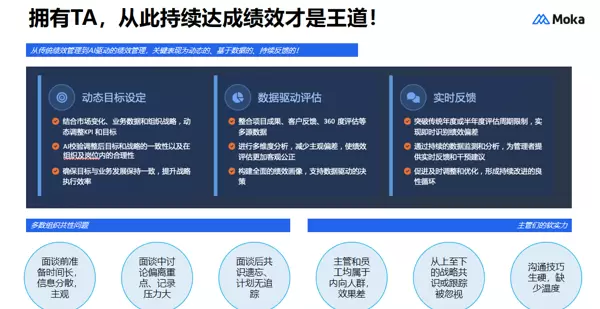 综上所述,本文从基本概念、应用场景、操作流程、管理效益和实施工具五个方面,全面剖析了 OKR 绩效考核与 KPI 之间的区别。两者之间没有绝对的好坏之分,最重要的是找到最适合企业当前状况的工具。此外,利用专业的 HR 系统,如 Moka HR 系统,该系统不仅支持 OKR 和 KPI 的双模式配置,还具备目标设定、过程跟踪、数据可视化分析等功能,可以帮助企业实现考核流程的自动化,有效激活组织效能。