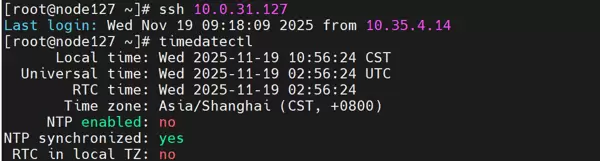 尽管 NTP 未启用,但时间已经与其他外部源同步。这意味着可以使用方案一中的手动修改时间命令来调整时间。