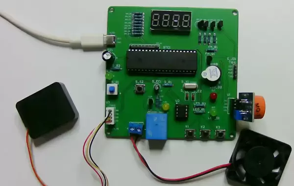 所使用的单片机型号为STC89C52。该开发板采用绿色PCB材料,具有双层结构,总厚度为1.2毫米,表面覆盖有铜箔用于接地。大部分组件采用插针安装方式,仅少数如降压芯片等采用表面贴装技术。电源接口类型为TYPE-C。