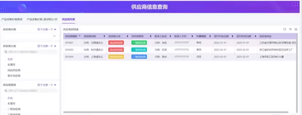 - 系统记录供应商表现:包括交期波动、质量波动、财务状况等。