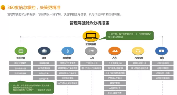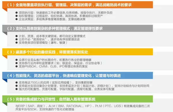 - 建立“项目管理与财务、销售数据”之间的联系(例如系统能够自动将项目成本信息同步给财务模块,或者将客户需求同步到销售模块),从而在整个业务链条上提高效率。