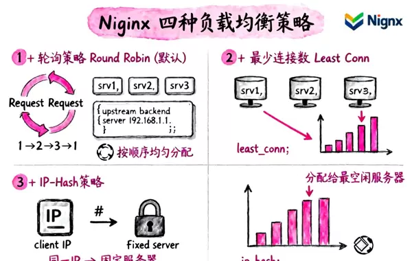 Nginx作为最受欢迎的软件负载均衡解决方案之一,提供了四种内置的负载均衡策略,每种策略适用于不同的应用场景。