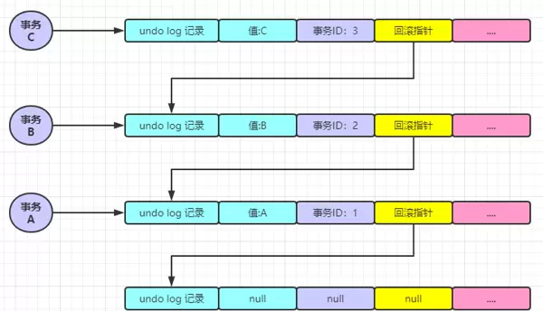 现在我们要引入一个新的概念:当数据存储在磁盘上时,每条记录除了包含业务数据外,还会附带两个关键字段——事务 ID 和回滚指针。这两个字段对于实现 MVCC 至关重要,其他细节在此暂不展开,聚焦主线才能避免陷入冗杂信息之中。
