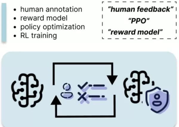 采用PPO等策略梯度算法,利用奖励模型提供反馈信号,持续优化策略模型,同时引入KL惩罚防止偏离原始行为过远。