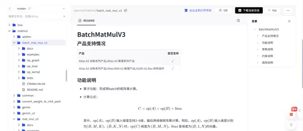 - 批量处理支持:BatchMatMulV3支持多组矩阵并行计算,极大提高批处理效率。