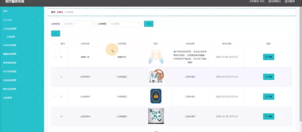 - 管理员:涵盖首页管理、个人中心、普通村民与乡村医生账户管理、公告发布、诊室管理、健康档案维护、培训学习安排、考核记录、医疗地图维护、药品信息管理、类型设置、购买订单处理、留言板监管及系统整体配置;