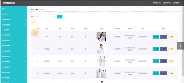 采用 JSP 与 Bootstrap 技术构建用户界面,针对管理员、乡村医生及普通村民三种角色设计差异化操作页面,整体风格遵循“医疗主题、简洁明了”的设计理念。