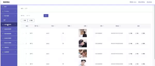 - 用户管理:查看所有注册租客信息,支持修改联系方式或身份证号,有权删除违规账户;