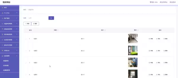 - 房源管理:支持房屋分类、房源信息的发布、编辑与删除,实时更新房源状态(如“可租”或“已租”);