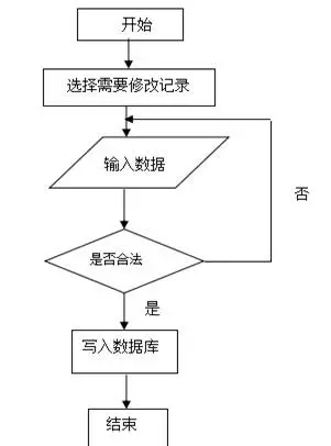 由于实际操作中可能出现输入错误或信息变更的情况,系统也提供了数据修改功能。下图展示了程序进行数据更新的操作流程,该过程同样会即时反映到数据库中,实现前后端数据的同步显示。