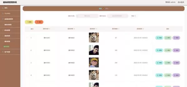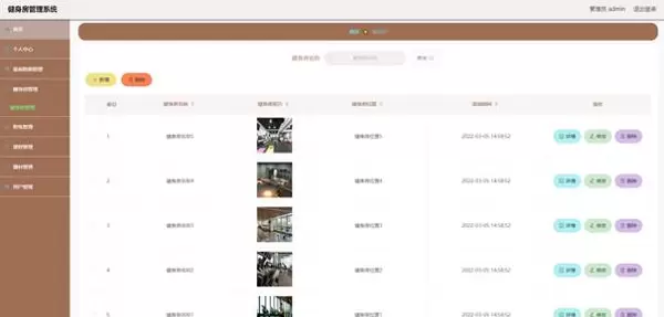 管理员可通过此页面对健身房相关数据进行维护,包括新增、编辑、删除及查看等功能。具体页面效果如下所示: