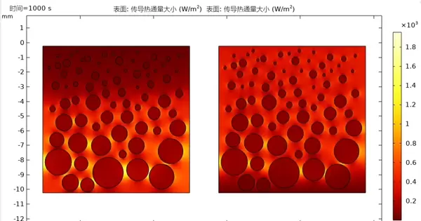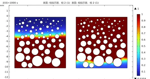 最近在实验室对一篇关于多孔介质中相变传热的COMSOL论文进行复现,过程中发现模型中蕴含多个关键细节。尤其是当系统包含相变颗粒与空气域时,采用不同方向加热(上侧或下侧)所引发的热传导行为差异显著,整个过程仿佛在演绎一场“冰与火”的物理对决。