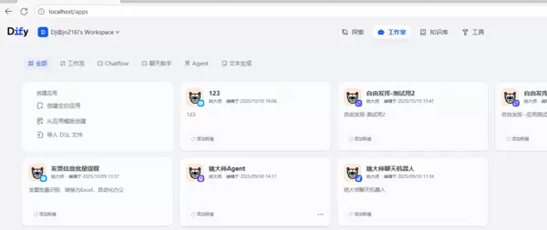打开浏览器,输入地址 http://localhost:80 即可进入Dify界面。