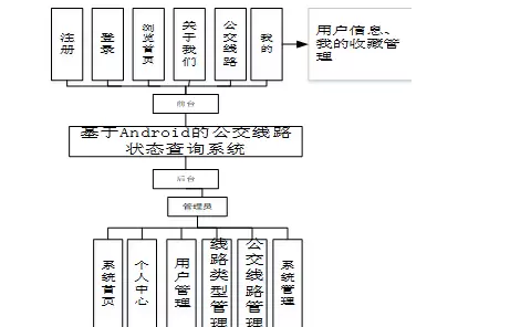 基于Android平台的公交线路状态查询系统,整体包含多个核心功能模块,主要包括:系统首页展示、个人中心管理、用户权限控制、线路分类设置、公交线路信息维护以及系统基础配置等。