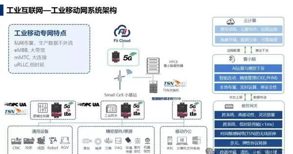 - 工业移动专网:采用5G uRLLC(超可靠低时延通信),时延小于1毫秒,结合TSN无线延伸与Small Cell+TSN交换机组网,保障高精度控制需求;