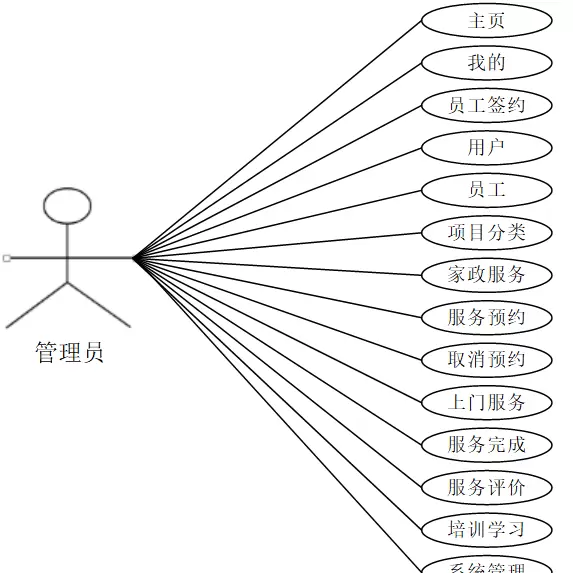 系统需满足多角色用户的实际使用需求,主要包括以下功能点:用户可通过主页浏览服务信息并完成注册登录;在个人中心管理个人信息与服务记录;员工可通过签约流程加入平台并接受任务分配;管理员可对用户、员工及服务项目进行增删改查操作;服务分类支持多级目录管理;家政服务模块支持图文介绍与价格设定;预约功能支持时间选择与状态查询;用户可申请取消未开始的服务;服务人员可在上门后标记服务启动,并在完成后提交确认;用户可对已完成服务进行评分与文字反馈;员工可在培训模块学习课程内容;系统管理员可执行数据备份、权限配置与运行监控等系统级操作。