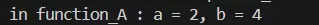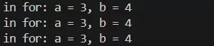 printf("in for: a = %d, b = %d\n", a, b);