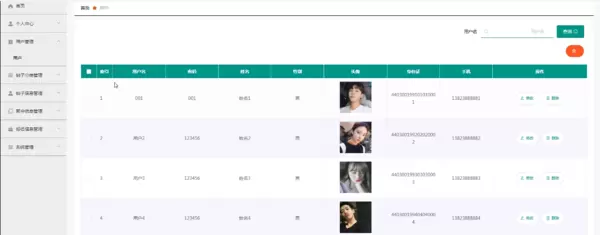 - 用户管理页:列出所有用户的注册信息(如用户名、真实姓名、手机号、注册时间),支持新增、修改与删除操作,并具备批量清除功能。
