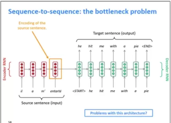 这种结构存在一个关键缺陷:无论输入句子多长,所有语义信息都被强制压缩进单一向量中。这使得该向量成为系统的“信息瓶颈”,尤其在处理长句时,极易造成信息丢失或压缩失真。