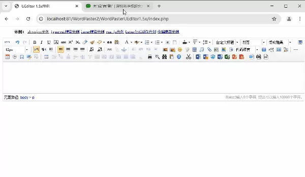 粘贴Word内容:可一键将Word中的文本连同样式粘贴至编辑器,系统会自动识别并上传其中包含的图片资源。