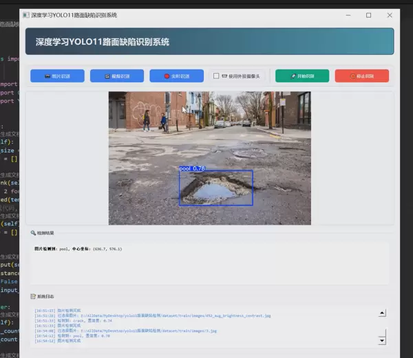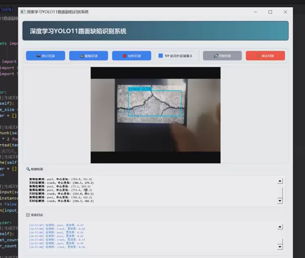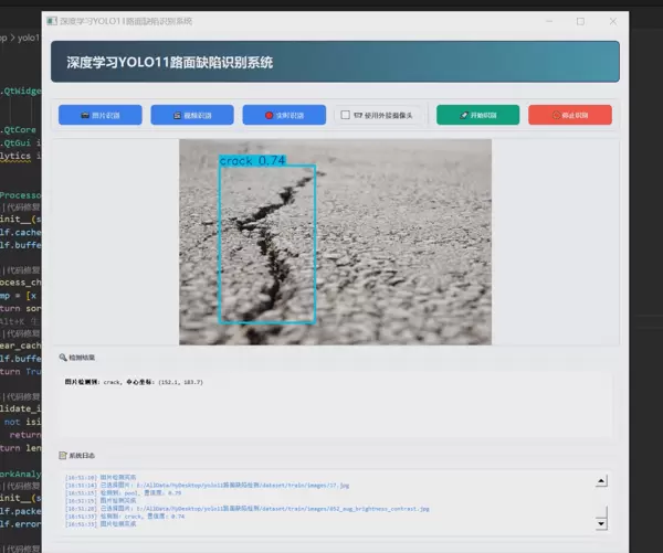 该系统基于计算机视觉技术,利用深度学习模型实现对道路表面缺陷(如裂缝、坑洞、松散等)的自动识别与分析。系统可在界面中实时显示检测结果,支持多种输入方式,具备较强的实用性与扩展潜力。