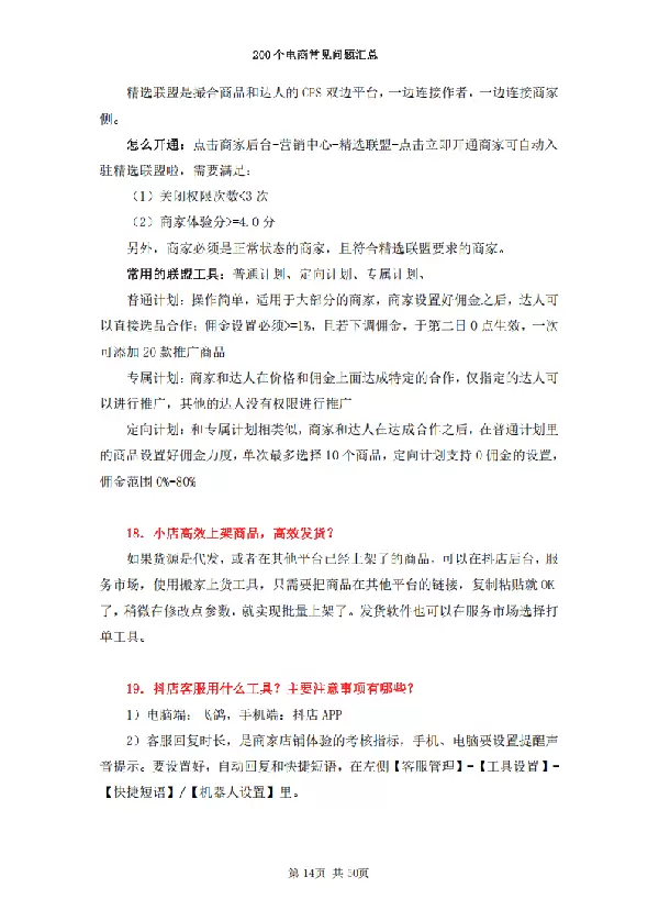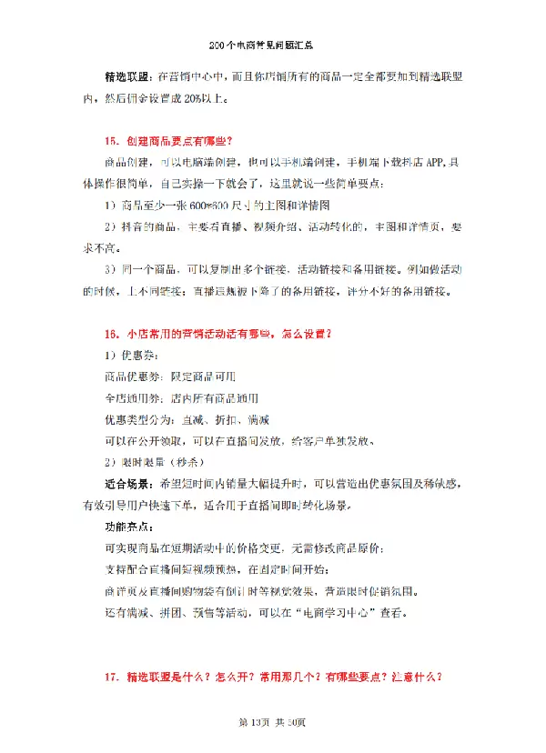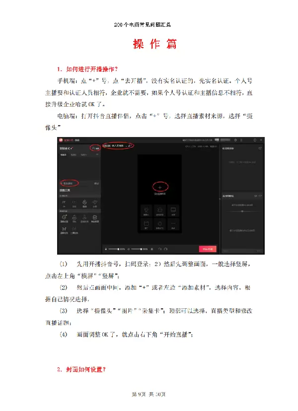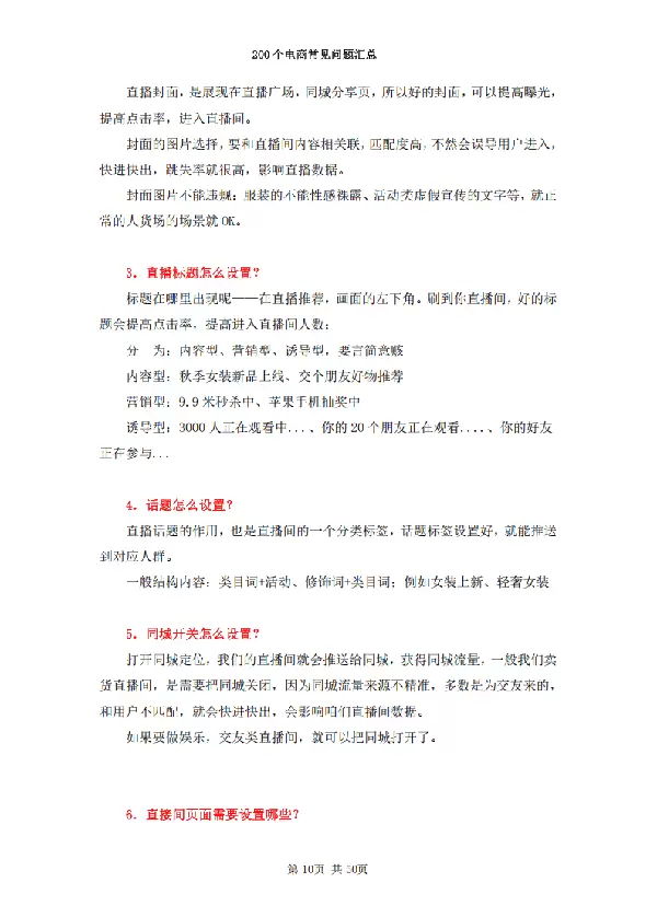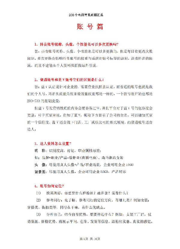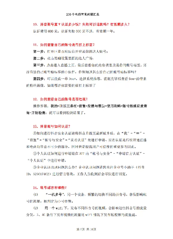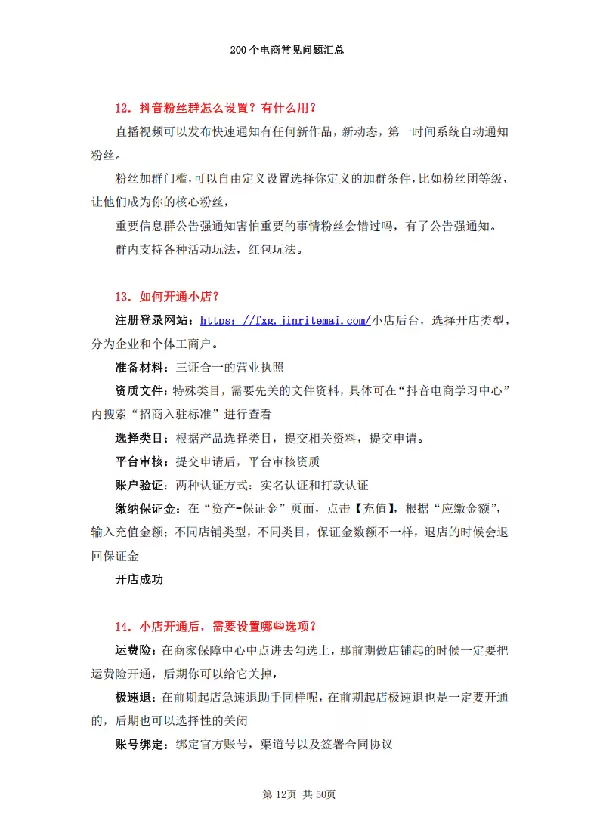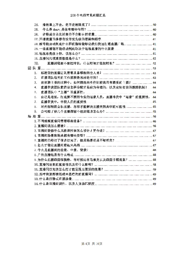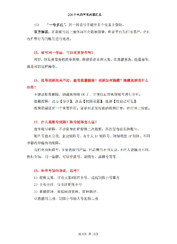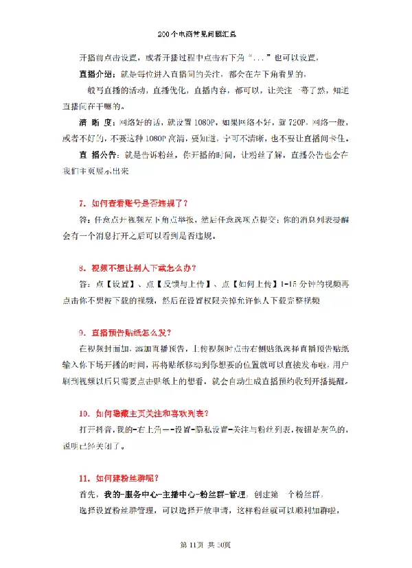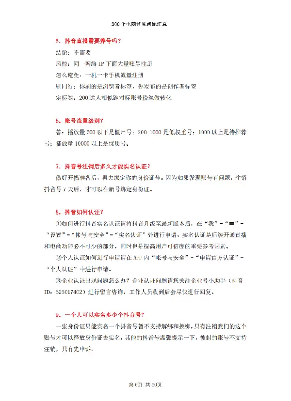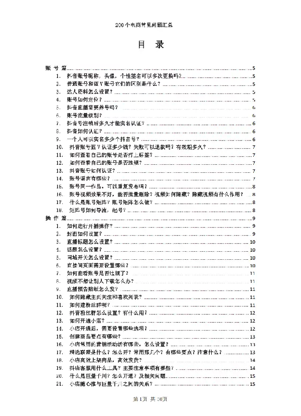 《抖音电商200个干货问题知识手册》系统梳理了直播电商的完整操作流程,涵盖账号管理、运营执行、硬件配置、玩法策略、商品规划、店铺设置、流量获取、团队构建及场地布局九大核心模块,针对行业从业者常遇到的200个实际问题提供详尽解答,是一份面向新手与成熟从业者的实用操作指南。