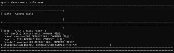 -- 查询指定表的建表语句
