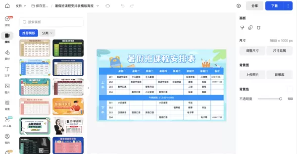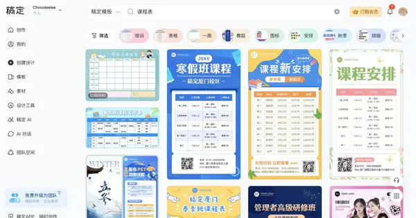 以稿定设计为例,该平台作为一站式视觉内容创作解决方案,极大简化了课程表的设计与管理流程,尤其适合教育机构快速产出高质量的可视化课表。