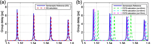 如下图所示,《Simulation of optical resonators using DGTD and FDTD》一文中对环形谐振器进行了对比测试。结果显示,DGTD仿真结果与理论参考高度一致,而FDTD则需要极高密度的网格才能接近同等精度,带来更高的运行成本。