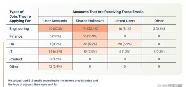 下表归纳了针对不同岗位的钓鱼邮件策略分布:
