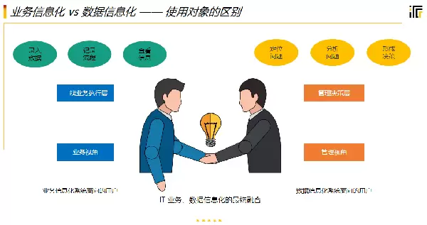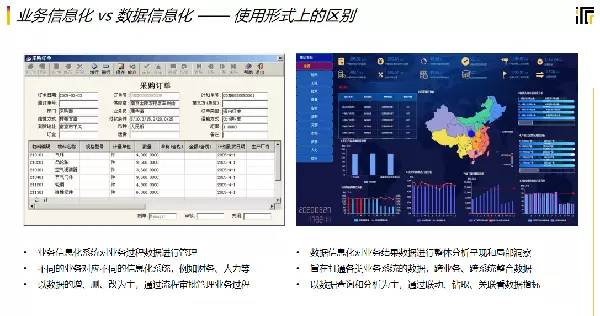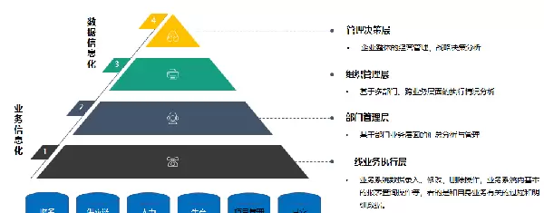 通常情况下,企业的信息化进程可划分为两个主要阶段——业务信息化与数据信息化。这种划分有助于更清晰地理解不同类型系统的功能定位。