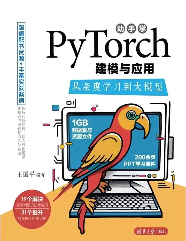 《动手学PyTorch建模与应用:从深度学习到大模型》是一本面向初学者的深度学习与大模型实战教程,基于PyTorch框架系统讲解建模方法与应用场景。全书共分11章,前六章聚焦深度学习基础知识,涵盖张量运算、神经网络基本原理、数据预处理技术及卷积神经网络等内容;后五章进入进阶主题,深入探讨图像、文本和音频领域的建模方法,并结合Transformer架构解析大语言模型的实际开发流程。书中通过房价预测、图像分类等具体案例引导读者掌握模型构建技巧,每章均配备动手实践练习题,强化学习效果。内容设计兼顾数学理论理解与工程实现能力培养,紧跟PyTorch最新发展动态,适合希望快速上手深度学习与大模型应用的技术人员和研究人员阅读。