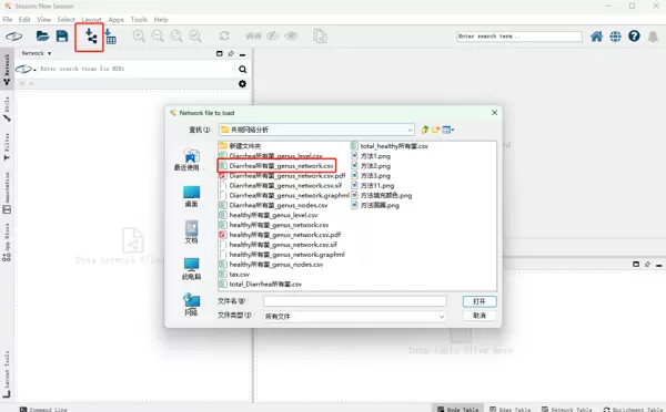 启动软件后界面如下所示。接下来导入预先准备好的网络数据文件。
