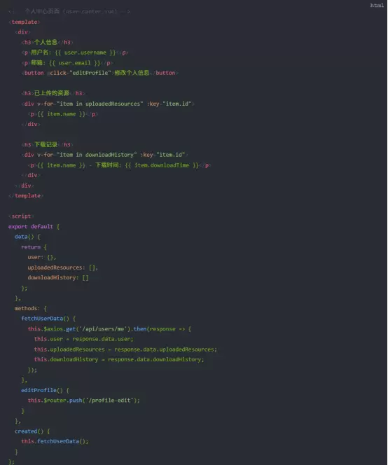 集中展示用户基本信息、历史下载记录及已发布的资源列表,提供资料编辑和资源管理入口。