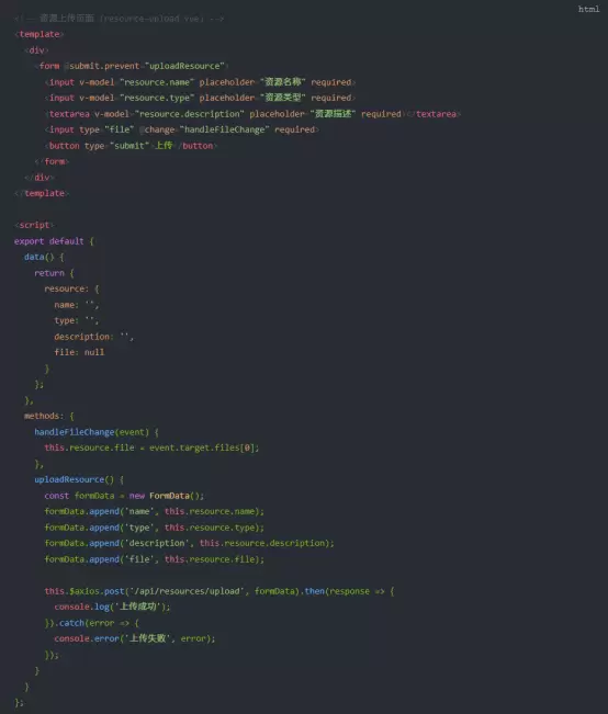 允许认证用户提交本地文件及相关元数据(如标题、描述、资源类别等),实现资源发布功能。