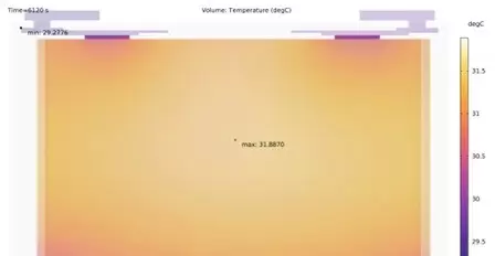 上述代码片段展示了温度随时间和空间演化的基础计算逻辑,但在实际三维Newman模型中,还需进一步考虑不同电极区域(如极耳附近或中心区域)的电流分布不均对产热的影响,并结合各向异性热导特性进行精细化建模。