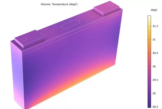 从建模角度看,必须将电化学控制方程与能量守恒方程联合求解。其中,典型的热传导方程可表示为: