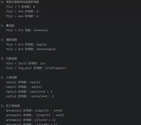 print(" cos(x) 的导数:", sp.diff(sp.cos(x), x))