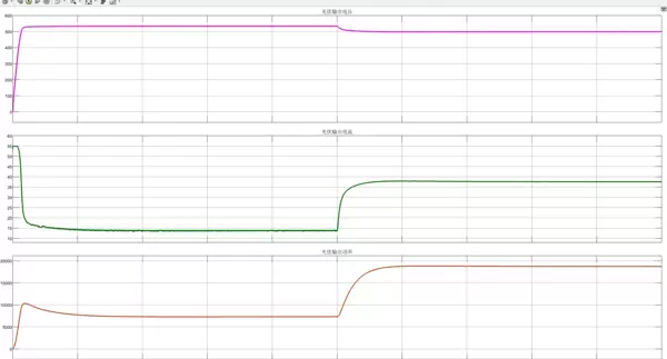 在并网状态下,光伏发电单元采用扰动观察法(P&O)实现最大功率点跟踪(MPPT),适用于额定功率20kW的光伏阵列。该方法通过周期性调节输出电压并检测功率变化趋势,逐步逼近最大功率点,虽然响应速度有限,但算法结构简单、可靠性高,在工程实践中广泛应用。