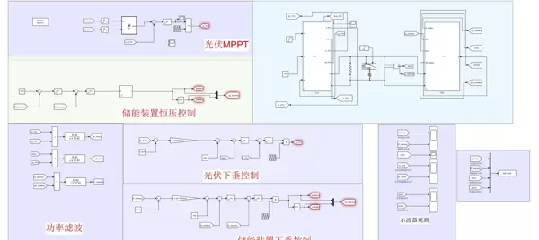 当系统进入孤岛运行状态时,光伏与储能单元均切换至下垂控制模式,参考《光储直流微电网运行控制与稳定性分析》第三章3.2节中的控制架构进行搭建。