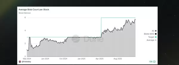 目前,以太坊设定的每区块 Blob 目标容量为 6 个。自今年 8 月以来,实际容量已基本接近这一目标。随着 L2 网络交易量稳步增长,Blob 已成为以太坊主网可靠的数据可用性层(Data Availability Layer)。截至当前,以太坊主网已接收超过 1400 万个 Blob,包含的数据量超过 1TB。与 Blob 出现前使用 “调用数据”(calldata)的方式相比,累计为 L2 网络节省了超过 6 万枚 ETH 的费用。