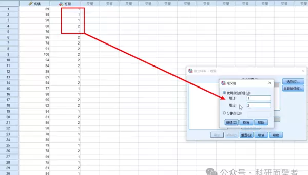 若涉及多个班级的数据,可使用以下方式进行分组划分:设定一个分割点,将小于该值的归为一组,大于该值的归为另一组。