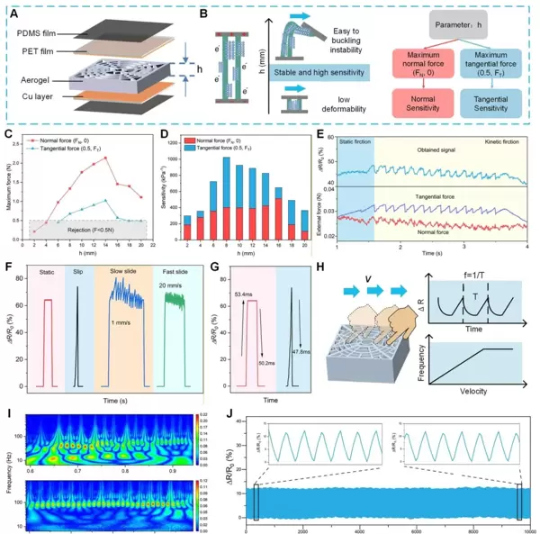 当进入滑移阶段(Ft > μFn),此前积累的弹性势能迅速释放,层状结构恢复原状,MXene层间接触减少,电阻出现高频振荡。振荡频率f与滑动速度v满足关系式f = v/λ(λ代表表面微凸体特征尺寸)。例如,20 mm/s的快速滑动产生100–150 Hz的高频信号,而1 mm/s的慢速滑动则对应低频响应,可通过频率特征准确判断滑动速度。