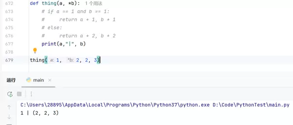 可变参数的形参以 * 开头,必须位于形参列表的最右边。可变参数以元组形式接收数据。
