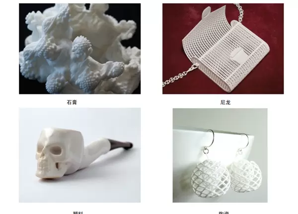 3D打印通过软件对模型进行分层处理,并结合数控成型系统,利用激光束或热熔喷嘴等技术,将树脂、金属粉末、石膏粉、尼龙、工业塑料、陶瓷粉末等特殊材料逐层堆积黏结,最终叠加形成实体物件。以下是几种常见的3D打印材料介绍,如图所示。