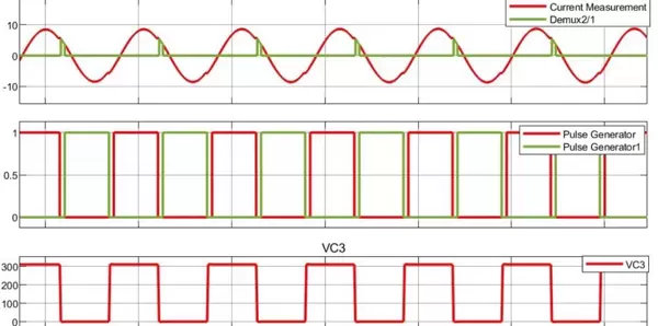 上述代码模拟了开关频率从50kHz线性上升至150kHz的过程。实际应用中,该信号需连接至功率开关管的驱动电路,以动态调节工作频率。此方式结构简单、易于实现,但存在明显缺点:当频率变化范围较大时,可能引发较强的电磁干扰(EMI),并对磁性元件的设计带来挑战。