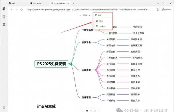 - 点击脑图可将其导出为图片格式或xmind文件;