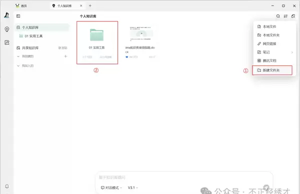 - 在个人知识库中新建一个名为“实用工具”的文件夹;
